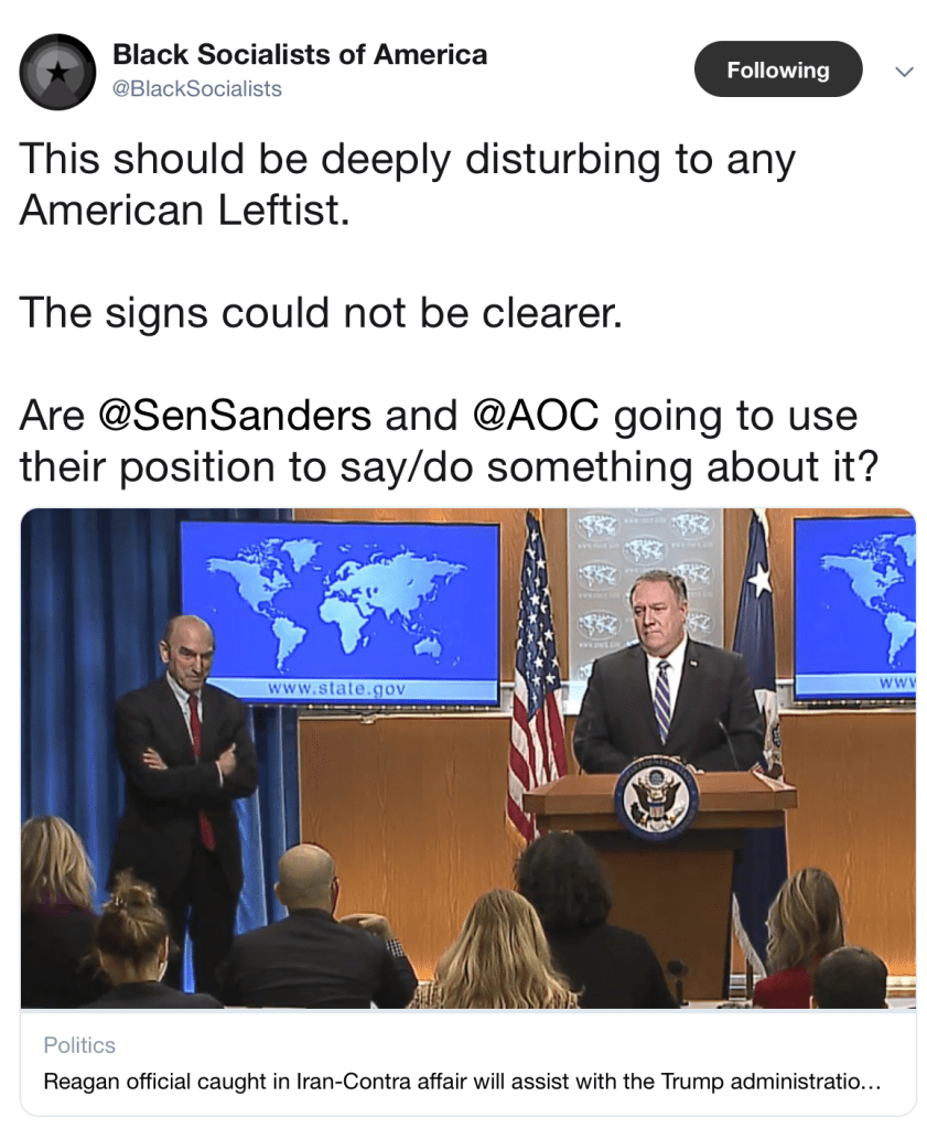 See this report, over at Politico, on Abrams appointment as special envoy for Venezuela: